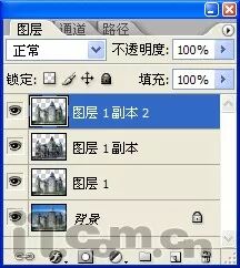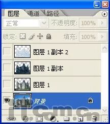 11、取消“图层1”、“图层1副本”和“图层1副本2”的图层可见性,然后单击“背景”图层