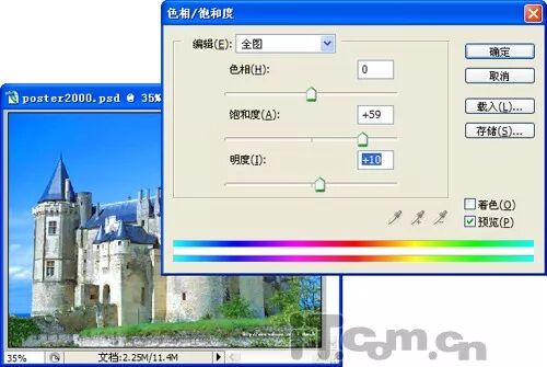 12、设置“背景”图层的色相/饱和度,其中“色相”为0,“饱和度”为59,“明度”为10
