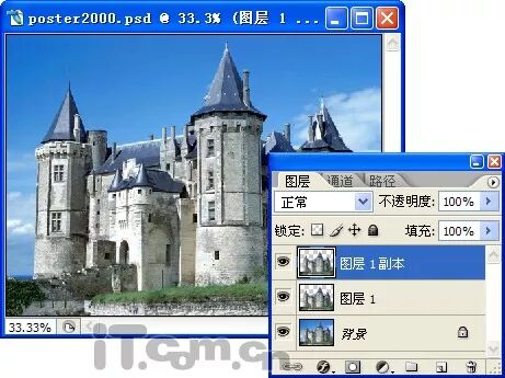 2、按下Ctrl+Shift+I快捷键,对选区进行反向选择,然后按下两次Ctrl+J自制出“图层1”和“图层1副本”
