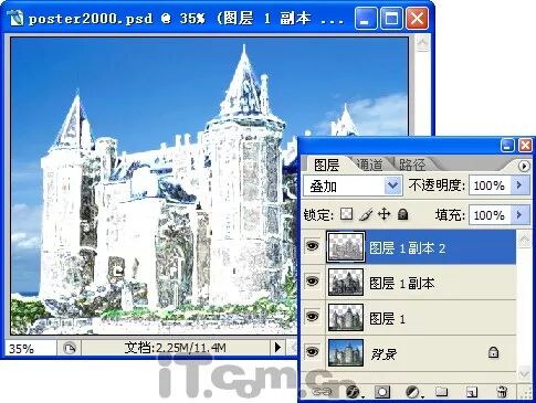 8、设置“图层1副本2”的混合模糊为“叠加”。
