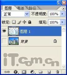 13、取消“背景”图层的可见性,然后单击“图层1”并按下Ctrl+Shift+E快捷键,合并可见图层